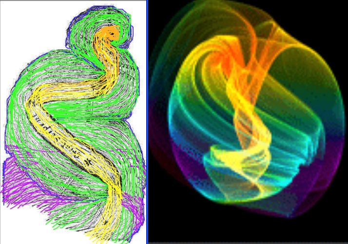 of light in space by gravity theorized by Einstein in 1915 and confirmed in 1919). As the current spirals out from the center