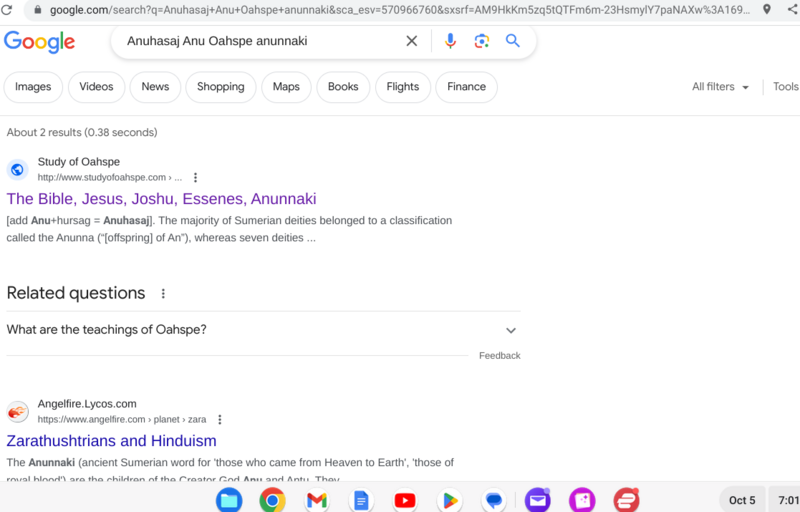 Anu Oahspe anunnaki and the top result was studyofoahspe.com